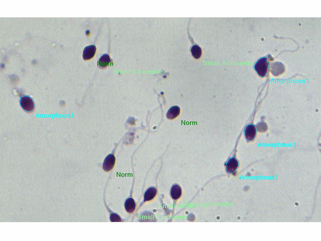 Morphology of the sperm head is an important criterion for the correct diagnosis. The software is set up to analyze still images of smears stained with the Diff-Quik stain according to strict Krueger’s criteria. We have selected Diff-Quik as worldwide recognized leader in rapid staining of sperm. With Diff-Quik, the head is stained pale blue in the acrosomal region and dark blue in the post-acrosomal region which is a good basis for precise image analysis.